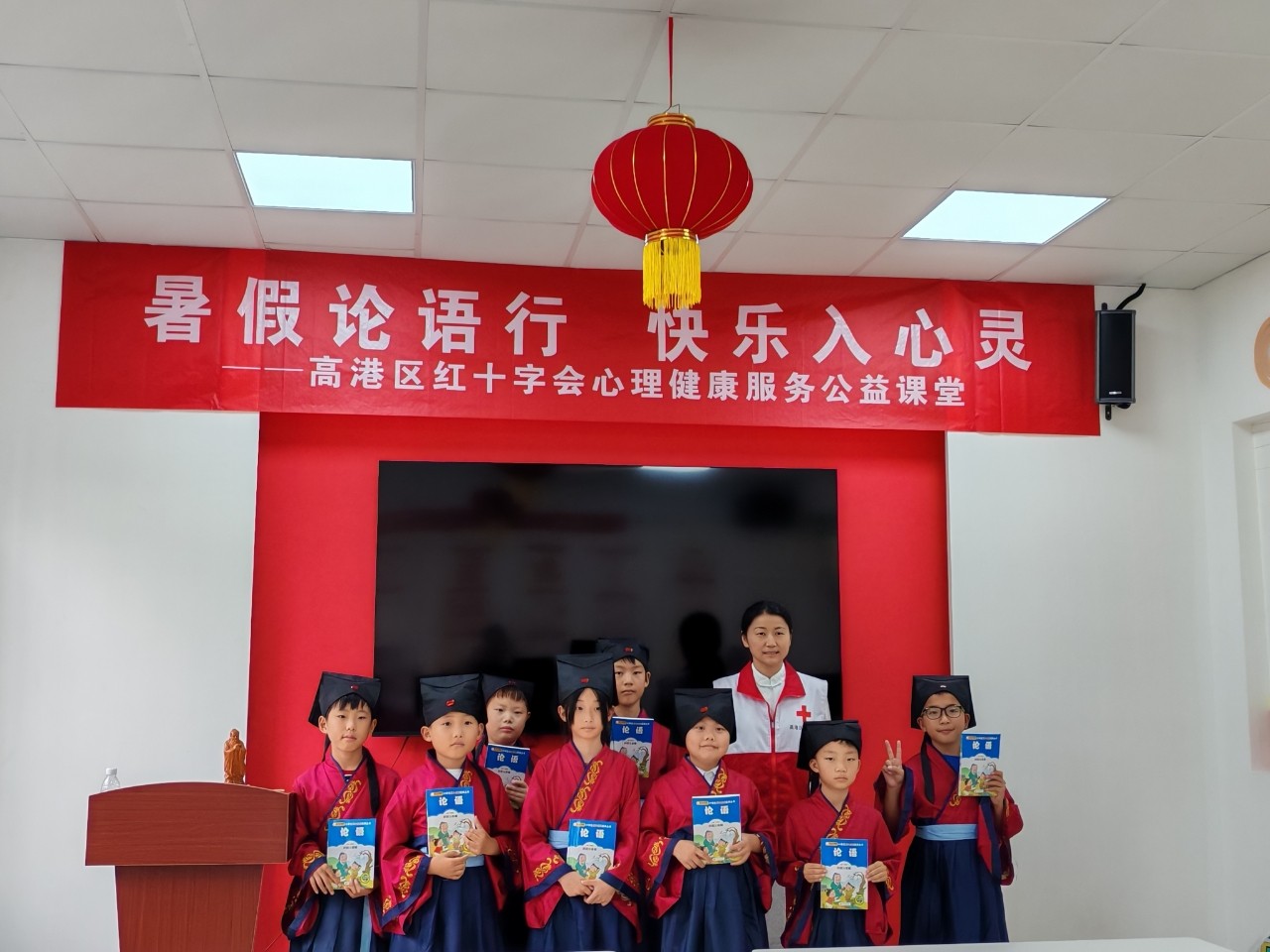 7月12日,在朗朗诵读声中高港区白马镇新时代文明实践中心迎来了区红十字会第一期暑期少儿《论语》公益课堂暨心理健康服务。同学们在高港区红十字会心理健康志愿者老师的带领下一起诵读《论语》,学习古圣先贤的智慧。