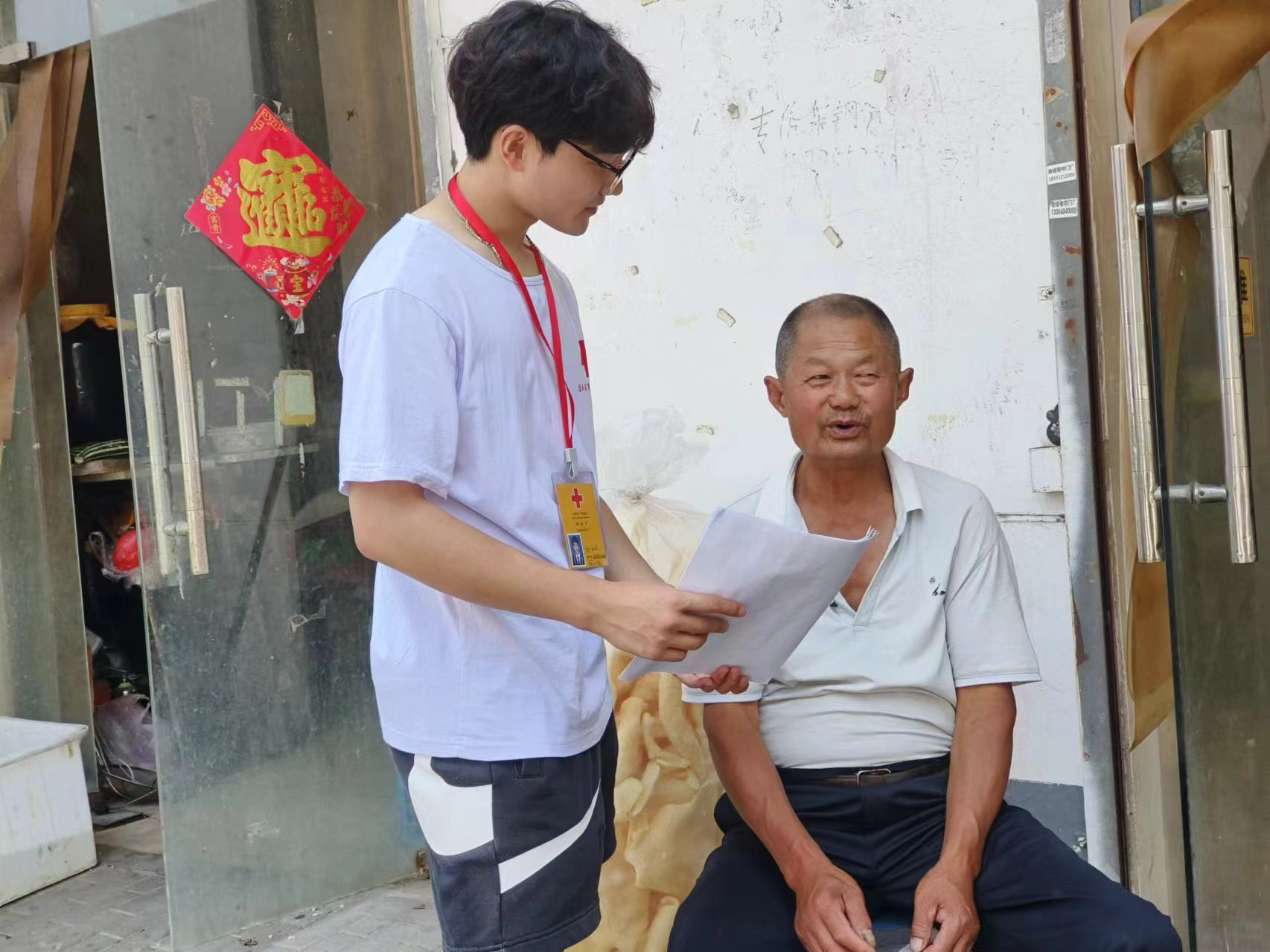 在活动现场,志愿者们分成两个小组,走街串巷,向村民们耐心地讲解海报的内容。他们用通俗易懂的语言,结合实际案例,为村民们深入浅出地阐述了消防及应急救护知识的重要性。遇到不识字的老人,大学生们更是细心地逐句解读,确保每一位村民都能理解。