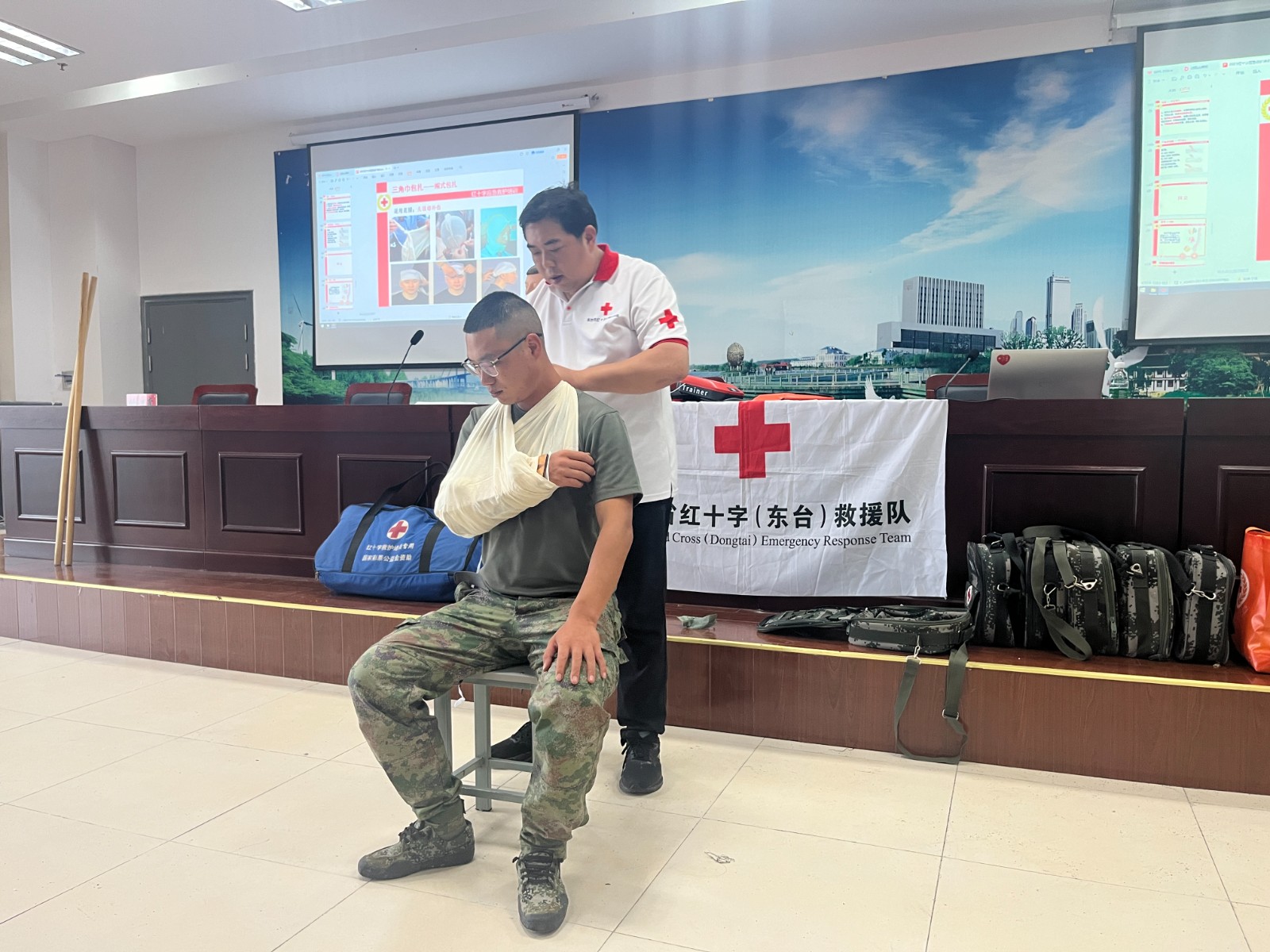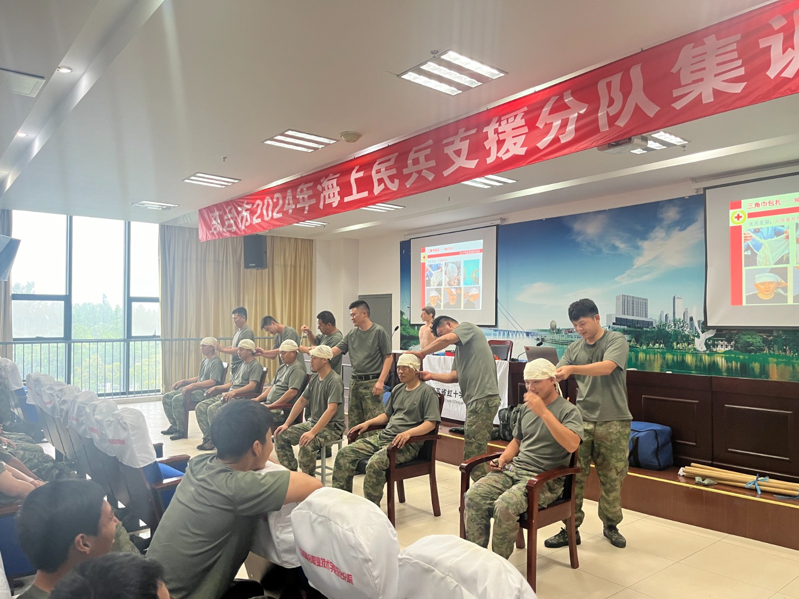7月9日、11日,市红会应邀为2024年民兵分队集训开展应急救护知识培训,130余名民兵参加了此次活动。