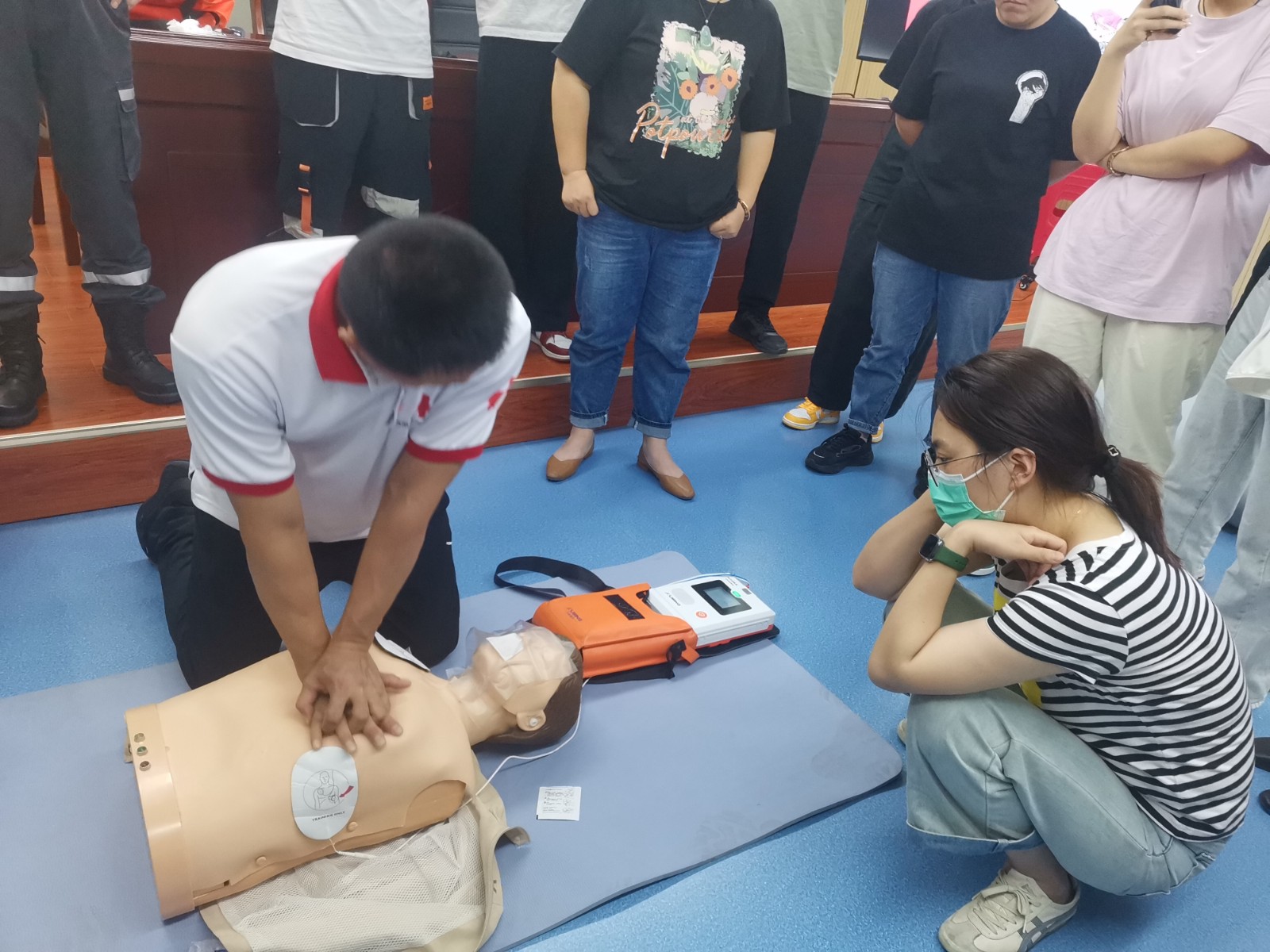 红十字救护师资理论结合实际将心肺复苏技能、AED使用及常见突发情况应对等内容做了详细讲解,通过演示和互动,让学员们认识到在遇到紧急情况和突发事件时,应该如何开展自救互救。