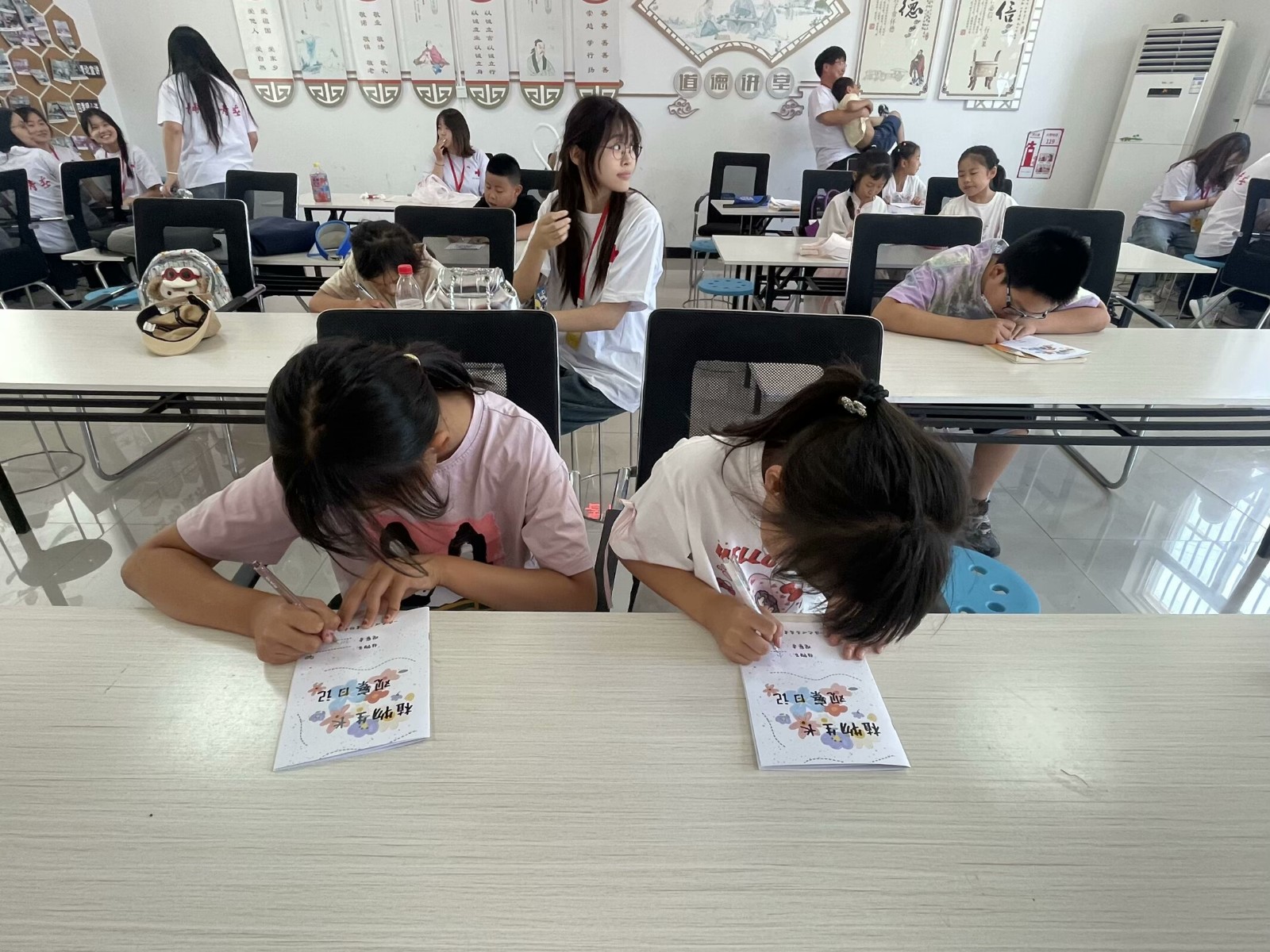 活动现场,志愿者们结合“科教育人”、“实践育人”观念,发挥学院专业特色,与前进村的孩子们建立“一对一”爱心家教服务模式,为孩子们讲解相应科目的课程内容,辅导孩子们的暑假作业,志愿者们让孩子们在知识的海洋中畅游,不断挖掘他们的学习能力。
