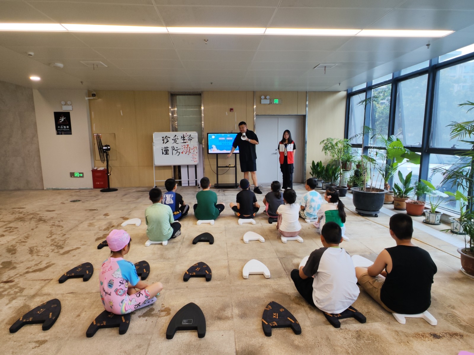 酷暑来临,为进一步做好青少年儿童暑期防溺水安全宣传教育工作,切实有效防范溺水事故的发生,以实际行动践行“人民至上、生命至上”理念,广益佳苑社区红十字会在广益游泳健身中心一楼泳池边开展“安全暑假,预防儿童溺水,救在身边”主题宣传教育讲座。