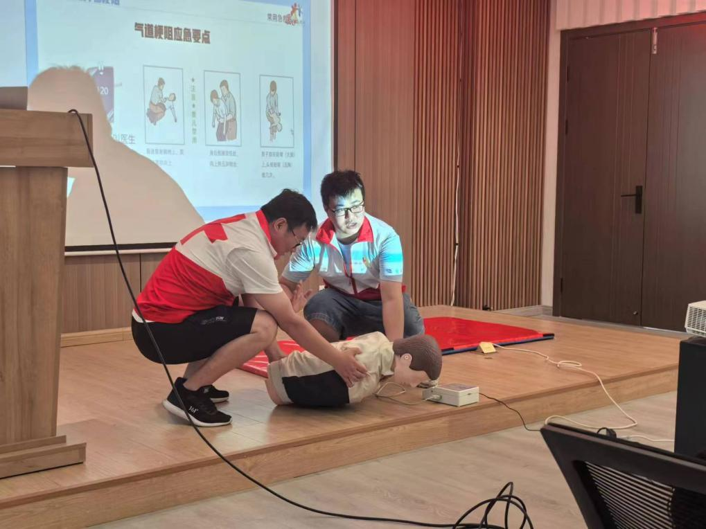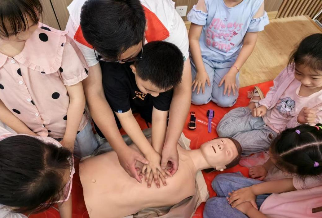 活动伊始,红十字救护志愿者们通过生动有趣的互动讲解,以深入浅出的方式,针对气道异物梗阻、溺水、中暑、触电、烧烫伤、交通事故和人身意外伤害多种情景向大家介绍了心肺复苏(CPR)、海姆立克急救法、烧伤烫伤处理等关键急救技能。随后,活动进入实操环节。模拟真实环境,老师鼓励小朋友们将所学知识应用到日常生活中去,成为自己和他人的守护者。在老师的指导下,小朋友们进行模拟演练,亲身体验了心肺复苏按压、人工呼吸、异物梗阻急救等操作步骤。同学们通过反复练习,大家逐渐掌握了正确的急救手法和流程,增强了应对突发情况时的信心和勇气。此外,活动还特别设置了问答互动和案例分析环节,通过分享与讨论,小朋友们对急救知识的理解和记忆也大大提升。