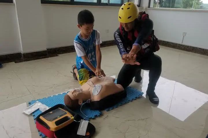 在随后开展的“博爱泳安夏令营”活动中,市红十字应急救援中心进行了桨板救援及水域抛绳救援演示,通过模拟溺水场景,展示伸缩杆、塑料瓶、救援绳等救生设备的使用方法,详细讲解了溺水自救及施救技巧。现场还为学生及群众演示心肺复苏等应急救护知识。