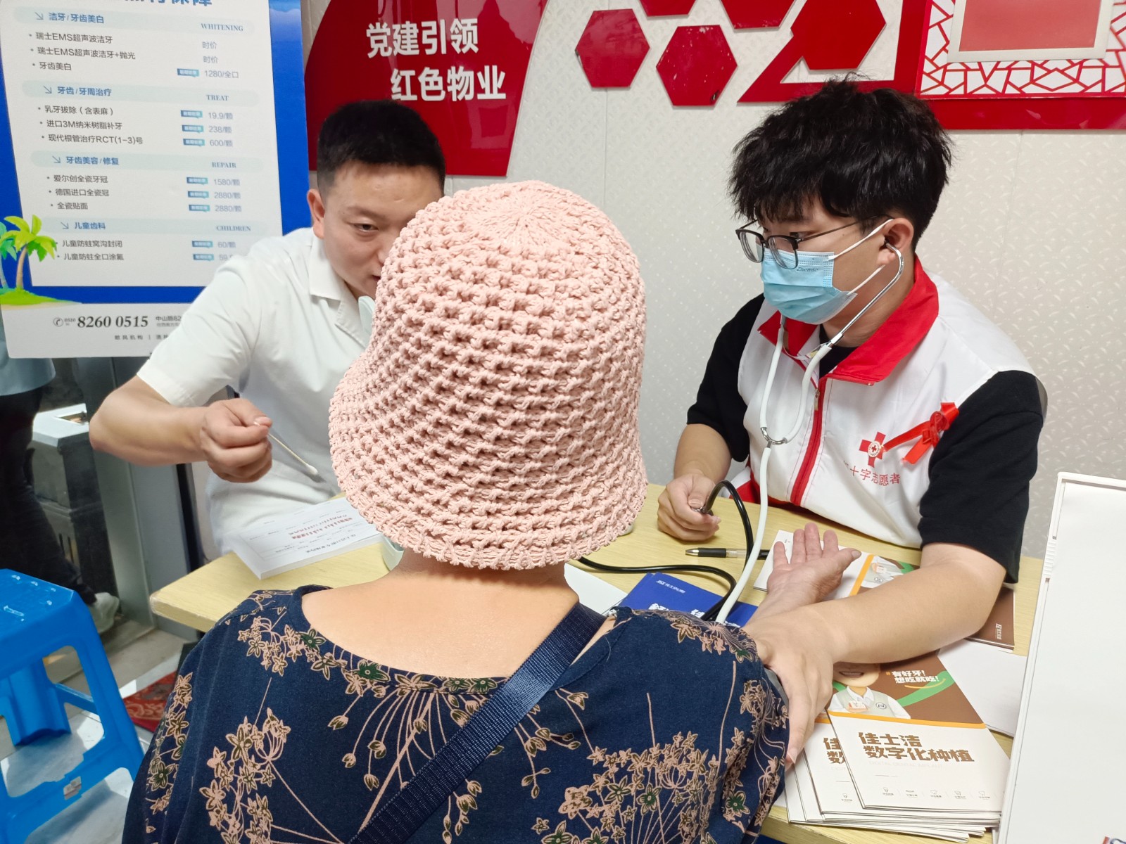 为更好服务居民群众,提升健康理念,倡导科学合理健康的生活方式、普及健康知识和自我保健意识,让居民不出小区就能享受到贴心、周到、便利化的医疗保健服务,7月15日上午,北大街街道古运河社区红十字博爱家园联合北大街社区卫生服务中心、无锡佳洁士口腔医院等多家医院在辖区禾嘉苑小区开展了“博爱送健康 义诊暖人心”活动。