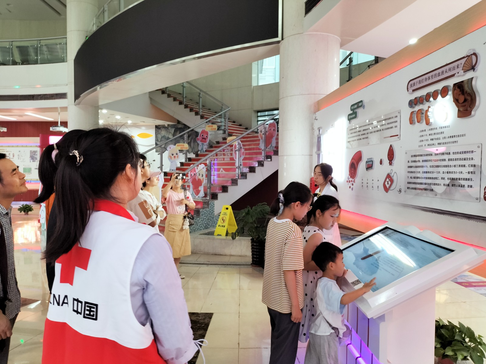 活动当天,孩子们在红十字志愿者和血站工作人员的带领下,踏入了血站科普站。这里,他们仿佛进入了一个关于血液的奇妙世界。通过生动的展览和专业的讲解,孩子们了解了血液的组成、作用、产生等基本知识以及输血医学发展史、血型等输血知识。孩子们聚精会神地听讲。他们深刻认识到了献血对于挽救生命的重要性,每一袋血液都承载着希望与重生。红十字志愿者还给大家介绍了关于血液的一些常识、献血的流程以及“三献”活动的意义等。他们通过讲述红十字的历史、使命和成就,以及志愿者们在世界各地提供紧急救援的感人故事,激发了孩子们关爱他人、奉献社会的热情。