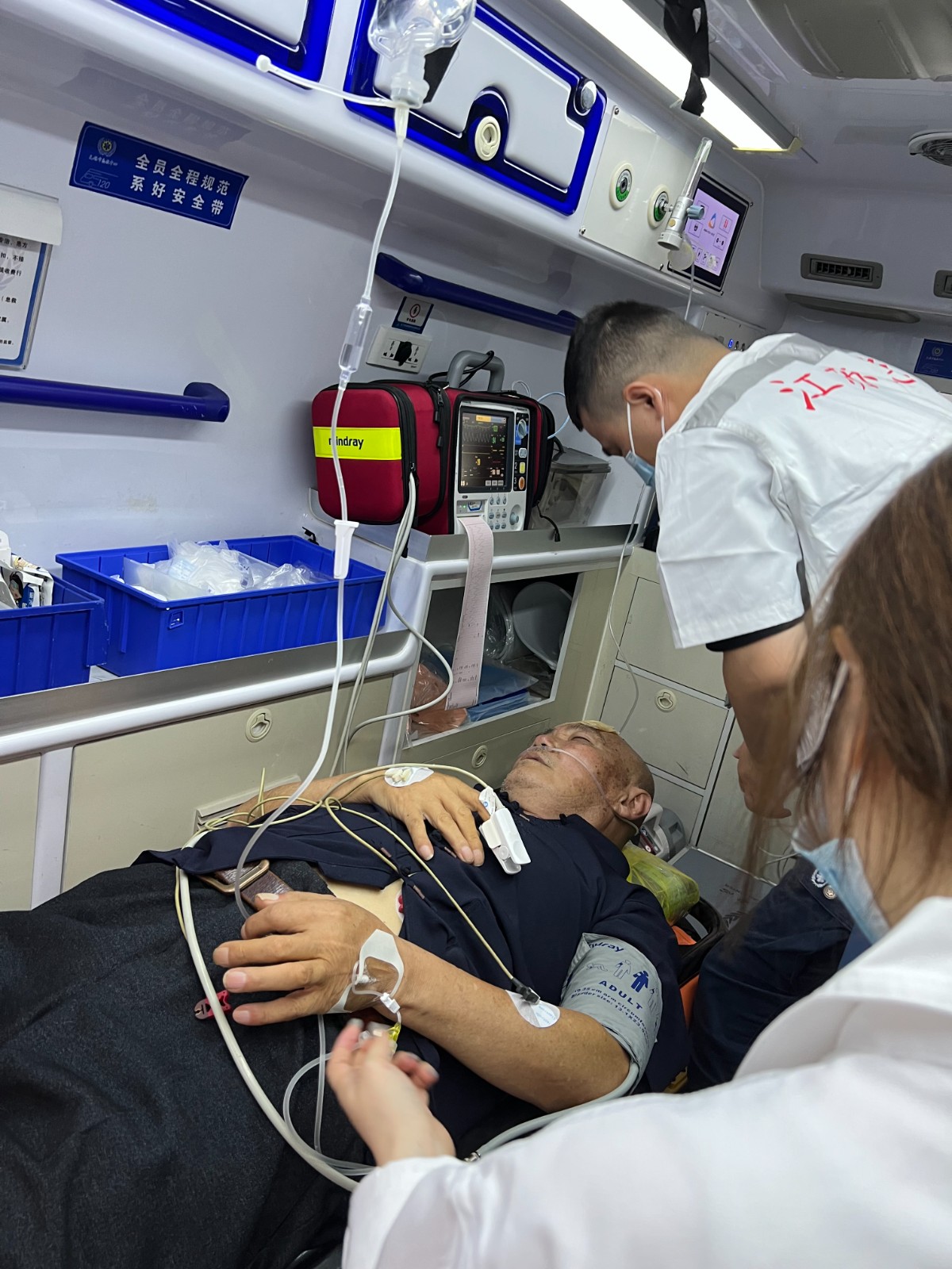2024年6月26日,扬名街道中桥社区红十字工作人员在进行困难老人走访途中,突然发现中桥二村33号旁有位老人瘫倒在地上,工作人员见状马上上前询问情况,帮忙拨打了120急救电话,并到附近诊所寻求帮助,由专业人员先进行急救处理。待救护车到来后,红十字工作人员配合医护人员把患者安全送至医院。