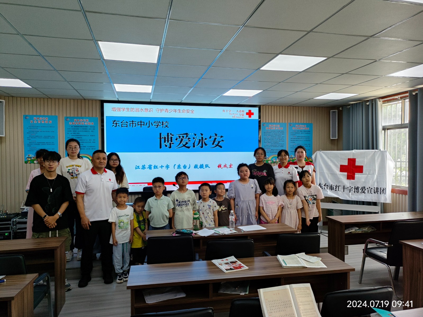 7月19日上午,东台市红十字博爱宣讲团、江苏省红十字(东台)救援队携手走进时堰镇爱心暑托班,为暑托班的学生及志愿者老师带来一场别开生面的红十字文化宣讲暨“珍爱生命 预防溺水”主题活动。