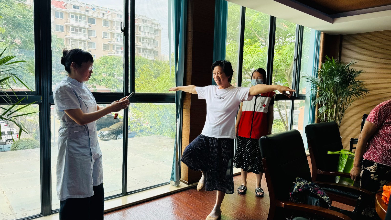 为弘扬人道、博爱、奉献的红十字精神,进一步丰富居民健身文化生活,提升身体健康素质,保护传承非物质文化遗产,7月19日下午,河埒街道卫生服务中心携溪南社区红十字博爱家园志愿者在溪南社区活动室开展了一场“传承非遗五禽戏 健康快乐伴我行”全民健身主题活动。