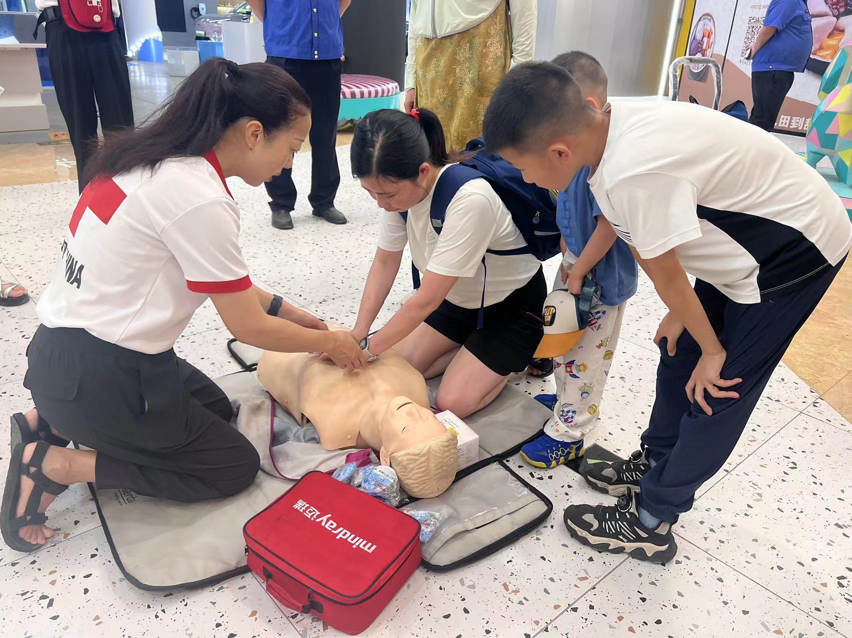 活动现场,红十字的展位成了最引人注目的焦点。志愿者们为过往的居民递上“应急救护”与“三献”知识的宣传册。志愿者们运用人体模型,现场演示心肺复苏术。这次活动融入了沉浸式与互动式的元素,让居民们能够亲身参与到急救技能的学习中来。他们或围在模型旁,仔细聆听志愿者的讲解;或亲自上阵,在志愿者的指导下尝试进行心肺复苏操作。这种全新的学习方式,不仅让居民们对急救技能有了更直观、更深刻的理解,更在欢声笑语中激发了他们对生命安全的重视与关注。