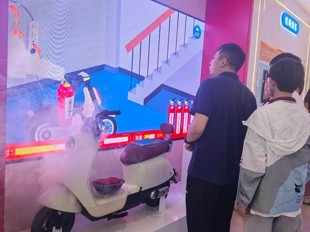 在校园VR体验区,学员们通过VR技术身临其境地进入人防知识、网络信息、远离香烟、反恐、防性侵等虚拟场景,在模拟场景中闯关体验。这个板块设计了消防体验区,采用红外光学定位,模拟电动车起火的场景,学员们了解正确灭火流程及体会错位灭产生不良后果。结绳自救演示系统,场馆老师教学生打绳结;消防器材展示区,学员们认识了常见的消防器材,并进行了有效互动,这里还设置了模拟报警演练区和逃生演练区。在地震小屋,学员们感受了不同等级地震发生时的危害,并在紧急情况下所作出正确的反应。