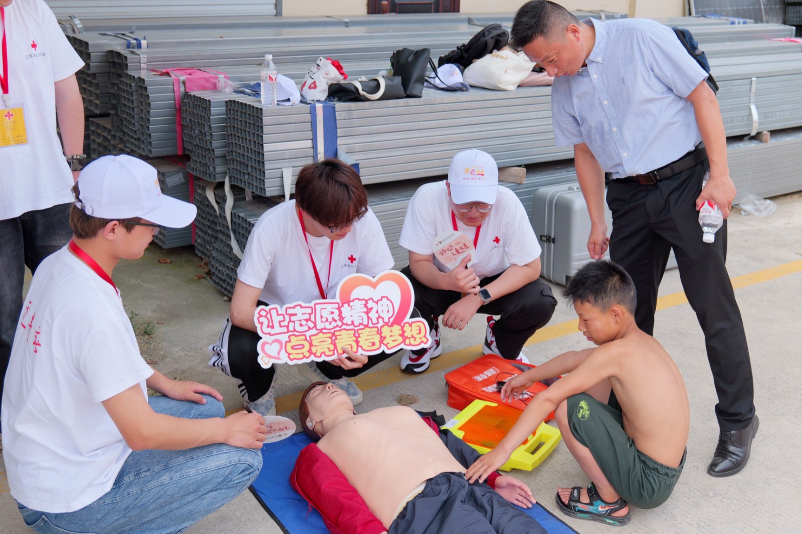 骄阳似火,炎炎夏日,志愿者们不惧酷暑,以积极昂扬的精神面貌,将“人道、博爱、奉献”的红十字精神和“奉献、友爱、互助、进步”的志愿服务精神继续传递。