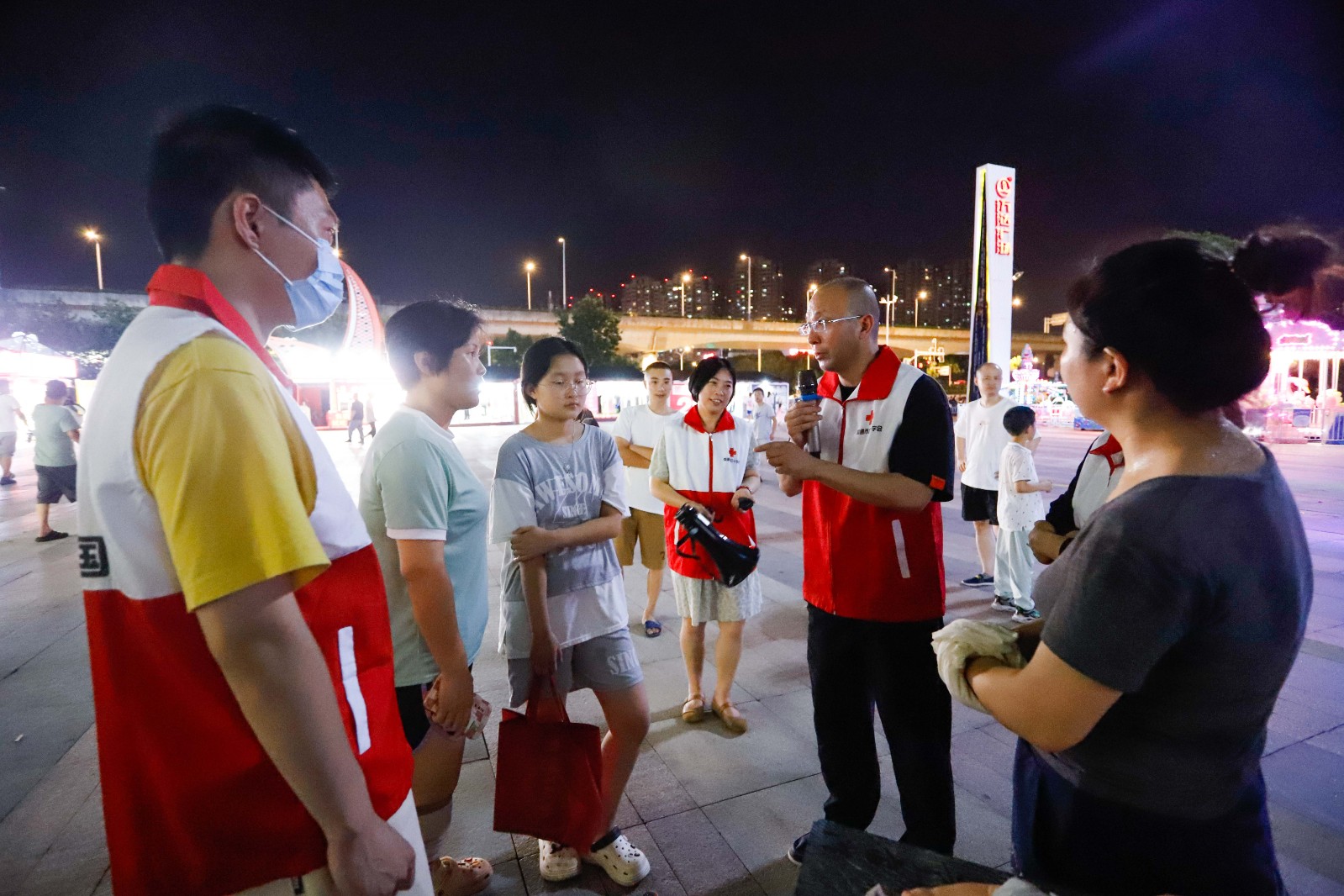 志愿者们还现场向来逛夜市的市民们发放了红十字知识宣传资料,向市民们普及献血、造血干细胞捐献、遗体器官捐献的相关知识。