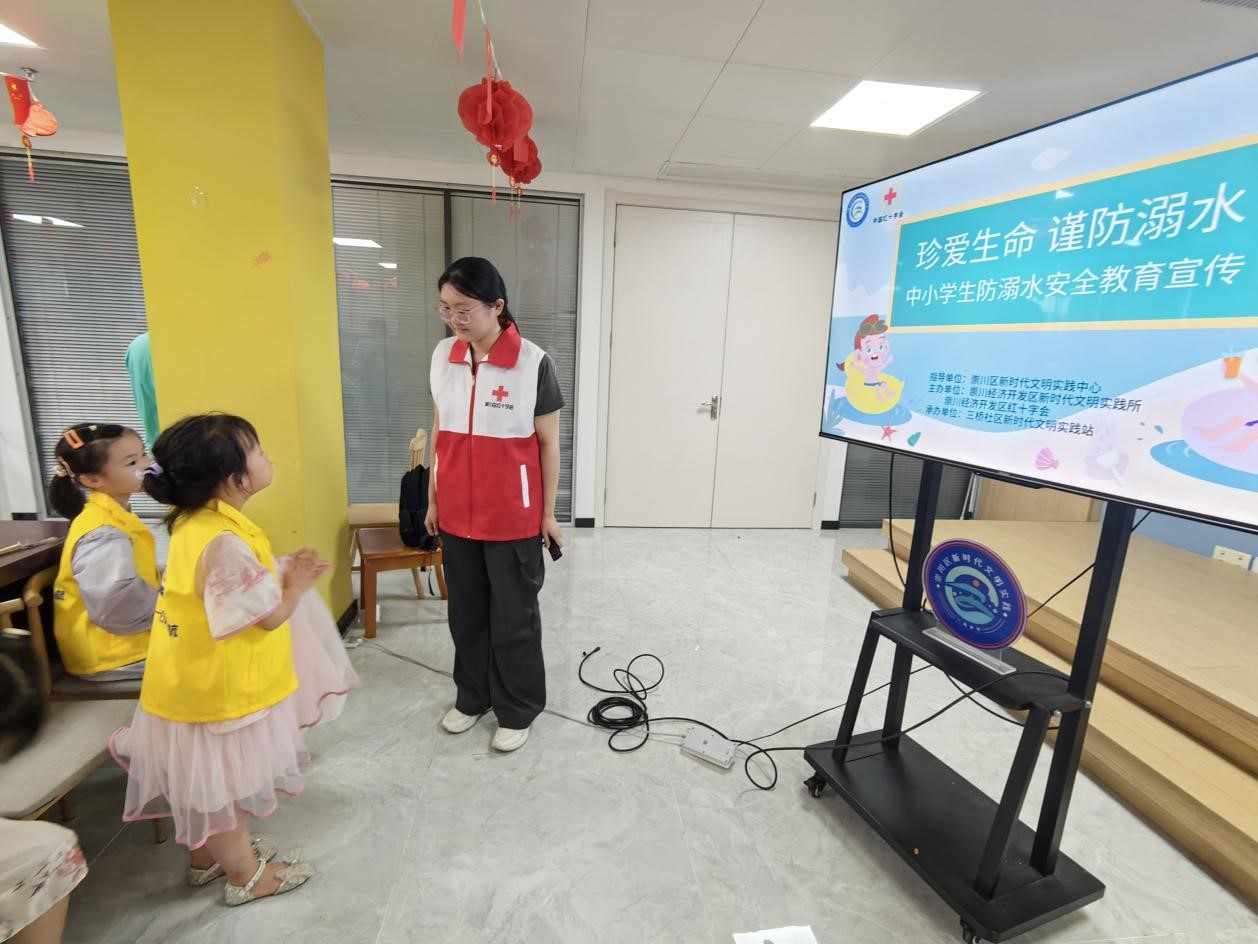 暑期是溺水事故的高发期,“溺水是儿童意外事故的‘头号杀手’,我国每年约有5.7万人死于溺水,青少年儿童溺水死亡人数占到了其中的56。”为提高孩子们的防溺水安全意识和防范能力,保障自身安全。7月22日下午,崇川经济开发区三桥社区红十字会志愿者发挥自身优势,给新业态新就业群体子女暑托班的孩子们上了一堂“珍爱生命,谨防溺水”暑期安全教育课。红十字会志愿者通过PPT讲解的方式向孩子们普及了防溺水的相关知识,提醒学生河沟、池塘等地方很容易溺水。并通过情景再现的模式,为孩子们演示了落水时自救的姿势,小朋友们听得专注、热情参与,整场活动气氛热烈,活动的最后,红十字会志愿者带领孩子们朗读防溺水歌谣,在跳动的音符中进一步筑牢未成年人安全防护墙。