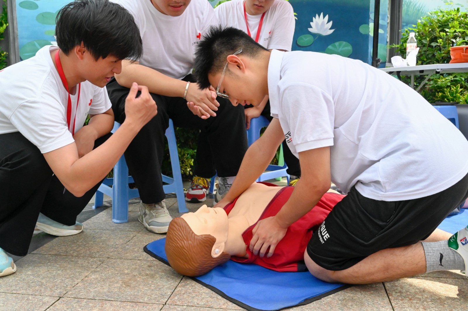 志愿者们到活动现场迅速做好准备工作,引导居民们有序参加。针对血压血糖的测量结果志愿者们提出合理建议,鼓励居民通过健康的饮食习惯提高生活质量,预防糖尿病、高血压等慢性疾病的发生;面对社区里对急救知识较需求群体,志愿者们生动地讲解并演示CPR和海姆利克急救法的操作并鼓励学习的居民动手操作。