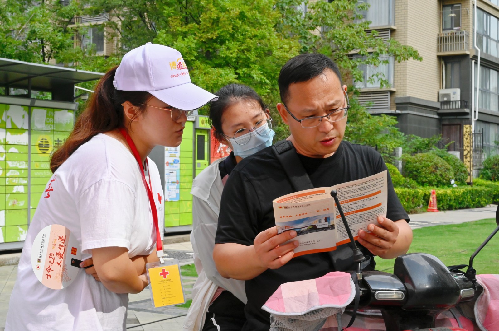 7月5日上午,“生命之约 大爱传递”志愿服务团队来到连云港市海州区秀逸苏杭小区开启“她健康”暑期社会实践的第五站。志愿服务团队按照大组合分小组的形式,以“她健康”宣传组为主,血压血糖测量组和急救组等小组协同配合开展活动。
