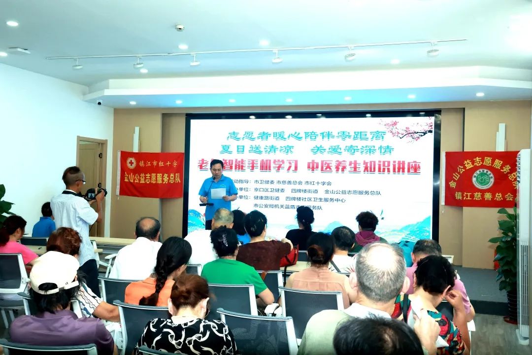 为让失独老人安度盛夏,金山公益志愿服务总队联合京口区卫健委、四牌楼街道和市公安局情报指挥中心7月24日在四牌楼党群服务中心举办了一场特别的夏日纳凉会,来自四牌楼街道、健康路街道的50多位失独老人在金山公益志愿者的陪伴下,吹着空调,喝茶水,学习老年人智能手机应用,听中医养生健康知识讲座,度过了酷暑中的一个惬意时光。