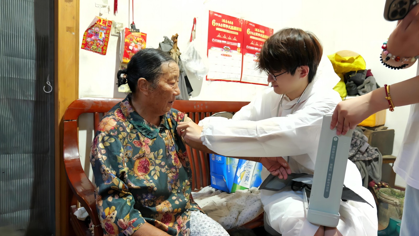 此外,志愿服务队还特别邀请了市妇幼保健院疼痛康复科的孙曼妮医生和中医内科的宋亚一医生,为老人们现场免费提供咨询和诊疗服务。她们针对老人的肩颈疼痛和内科问题进行专业诊疗,让老人们在家门口就能享受到便捷的医疗服务。