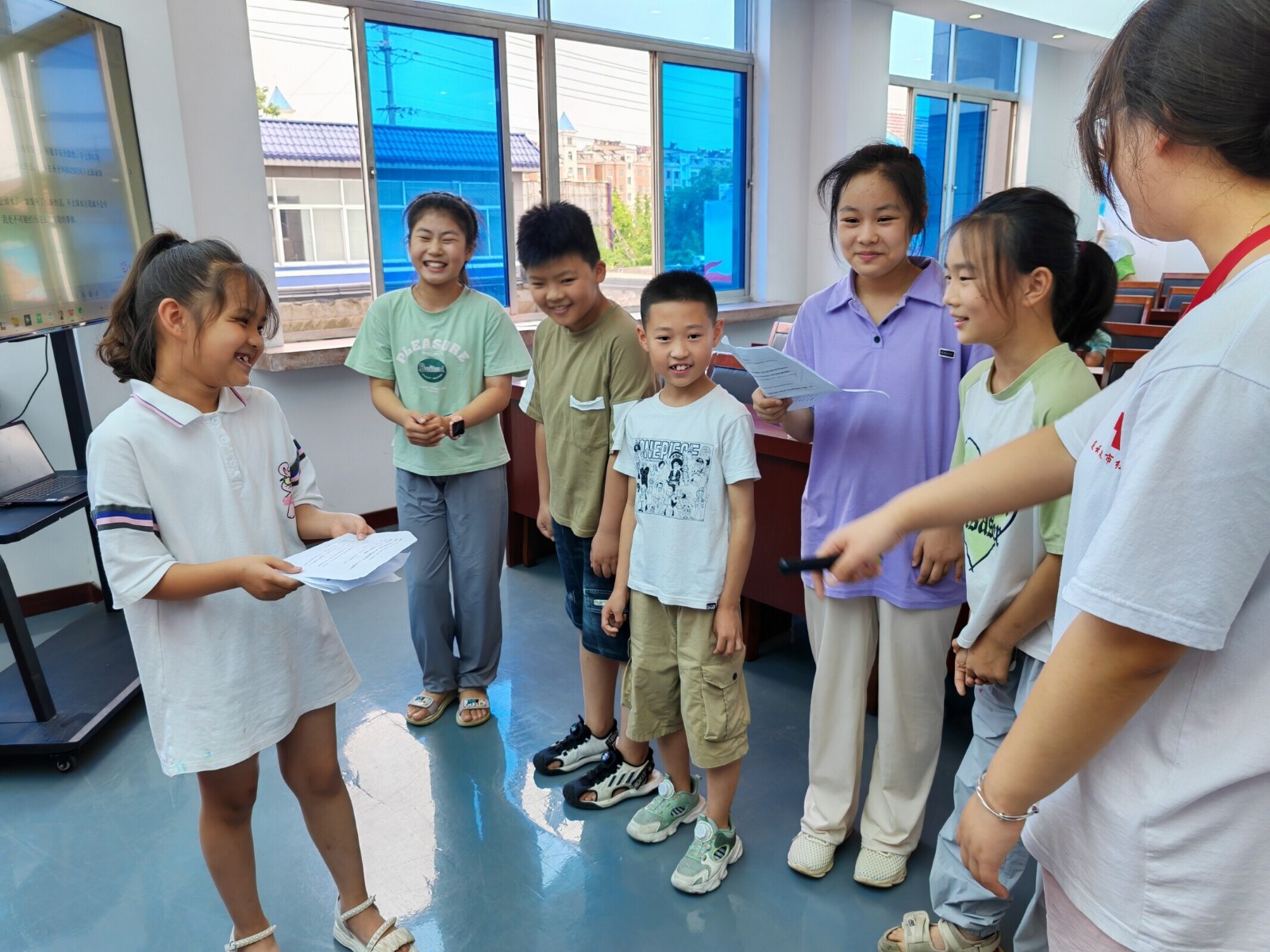 午后时光,活动转入轻松愉快的健身操环节——“十巧手健身操”。孩子们跟随志愿者的节奏,舞动手指,每一个动作都精准到位,展现出孩子们对健康的热爱与追求。紧接着,志愿者又带领孩子们进行了非遗课堂——漆扇书夏意,夏雨润扇心。在志愿者的指导下,孩子们亲手体验了漆扇制作的精妙工艺、他们将大漆缓缓滴在水面、用搅拌棒均匀搅拌、将扇子缓缓转动在水中,不一会儿,精美的漆扇作品完成了。