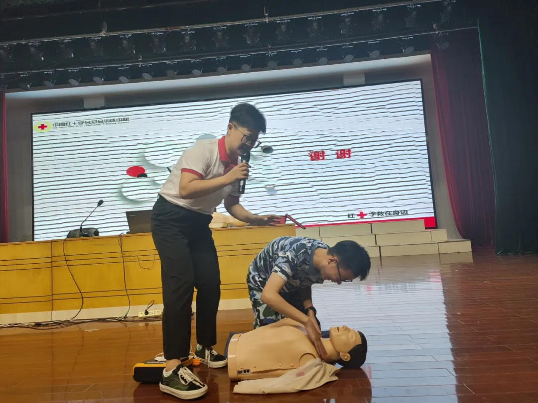 为普及应急救护知识,切实提高同学们的自救互救能力,掌握基本应急救护知识和技能,筑牢生命防线,7月11日,红十字会师资分3个班次为高一839名新生开展了“ 心肺复苏(CPR) ”应急救护知识讲座。理论知识讲解让大家了解什么是心肺复苏,如何掌握正确的心肺复苏操作步骤。