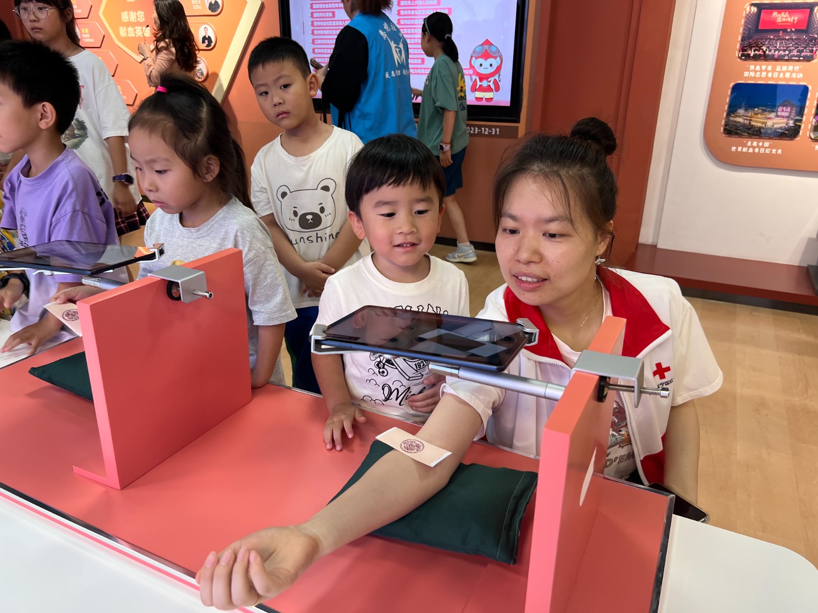 红十字志愿者详细地讲解,通过有趣的小游戏和显微镜下精密的观察,帮助青少年们进一步了解了什么是血液、血液的新陈代谢以及血型有哪几种,青少年们惊讶的发现,原来血型与性格之间也存在一定联系。在红十字志愿者的指导下,青少年们通过电脑模拟系统,亲身体验了献血的过程。屏幕中,面色苍白的女孩在他们的“热血”助力下恢复了健康,这一幕让青少年们深切感受到了无偿献血的意义和价值。