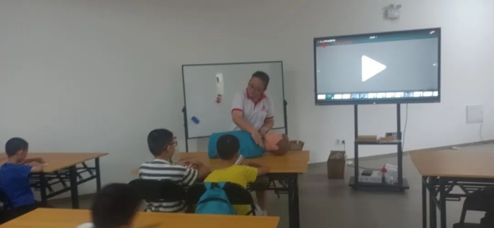 “同学们,如果想游泳去哪里?哪些地方不能游泳?发现有人落水了怎么办?”……培训课堂上,区红十字会救护培训老师通过生动的案例、形象的图片和视频,从野外危险水域辨别、如何判断溺水、如何正确施救溺水人员三个方面,讲解了溺水的危害、发生原因以及预防措施。真实的案例、客观的数据分析,让学生们牢记“生命至高无上,溺水警钟长鸣”的警示。