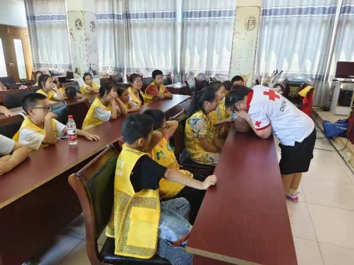 活动中,溧水区红十字会的志愿者为孩子讲解心肺复苏、AED、气道异物梗阻三项至关重要的急救技术。课堂上,老师以专业且耐心的态度,将复杂的医学知识转化为生动易懂的语言,为孩子们开启了一扇通往急救世界的大门。