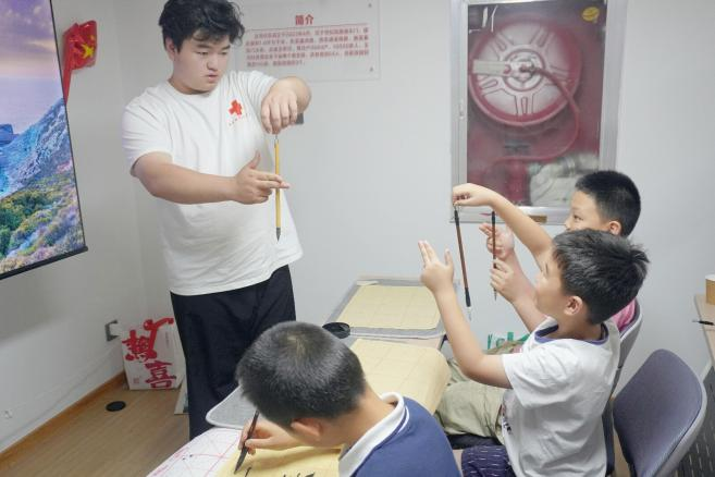 为丰富社区孩子们的文化底蕴,体验中国书法文化的博大精深,7月15日,连云港师范高等专科学校学前教育学院(音乐学院)红十字会赴海州区新南街道党群服务中心,开展“博爱青春”暑期志愿服务之“丹青戏韵,笔墨传薪”书法教学主题活动。