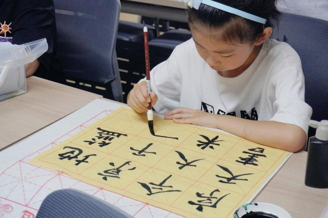 书法是一种修身养性的艺术形式,能够培养人们的耐心、专注和恒心,提高人们的修养和境界。活动伊始,志愿者准备好毛笔、墨汁、毛毡等书法用品后,为小朋友们介绍了笔墨纸砚以及书法的起源、发展等知识,让孩子们对书法有了初步的了解。接着,志愿者从最基本的坐姿、毛笔的握笔姿势、运笔,到汉字的结构布局、笔画练习、章法运用,循序渐进地引导孩子们掌握书法的基本技巧,一步步带领孩子们感受书法的妙趣横生。