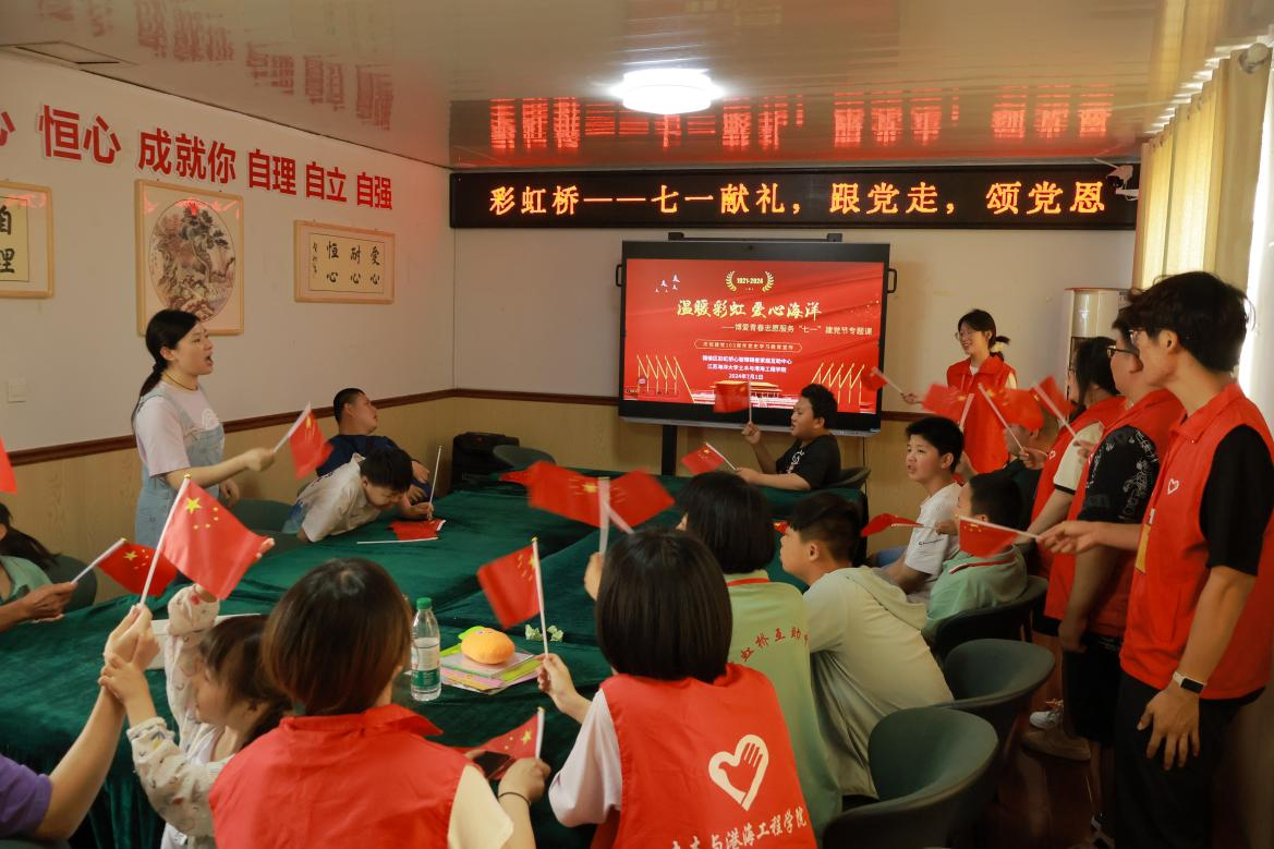 为庆祝中国共产党成立103周年,近日,土木与港海工程学院“温暖彩虹 爱心海洋”关爱心智障碍儿童及其家庭暑期社会实践团队在赣榆区彩虹桥心智障碍者家庭互助中心进行“七一献礼,跟党走,颂党恩”党史学习教育。