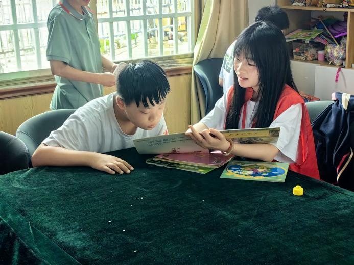 志愿者靳瑞、毛伊茜在专业护理人员的悉心指导下,陪伴孩子们进行了一系列的康复运动。这些活动包括轻松的伸展、平衡训练以及肢体协调练习,确保每位孩子都能在安全的环境中得到恰当的锻炼。随着活动的圆满结束,两位志愿者与孩子们共同回顾了这一段欢乐时光,对孩子的积极参与和不懈努力表示了由衷的赞扬和鼓励。在一片温馨和谐的氛围中,大家依依不舍地告别,并期待着下一次的相聚。互动让志愿者深刻感受到了耐心和爱心在与心智障碍儿童交流中的重要性。每个孩子都是独一无二的,他们有着不同的个性和需求。通过游戏和活动,不仅帮助他们学习新技能,还为他们提供了情感上的慰藉和社交上的机遇。