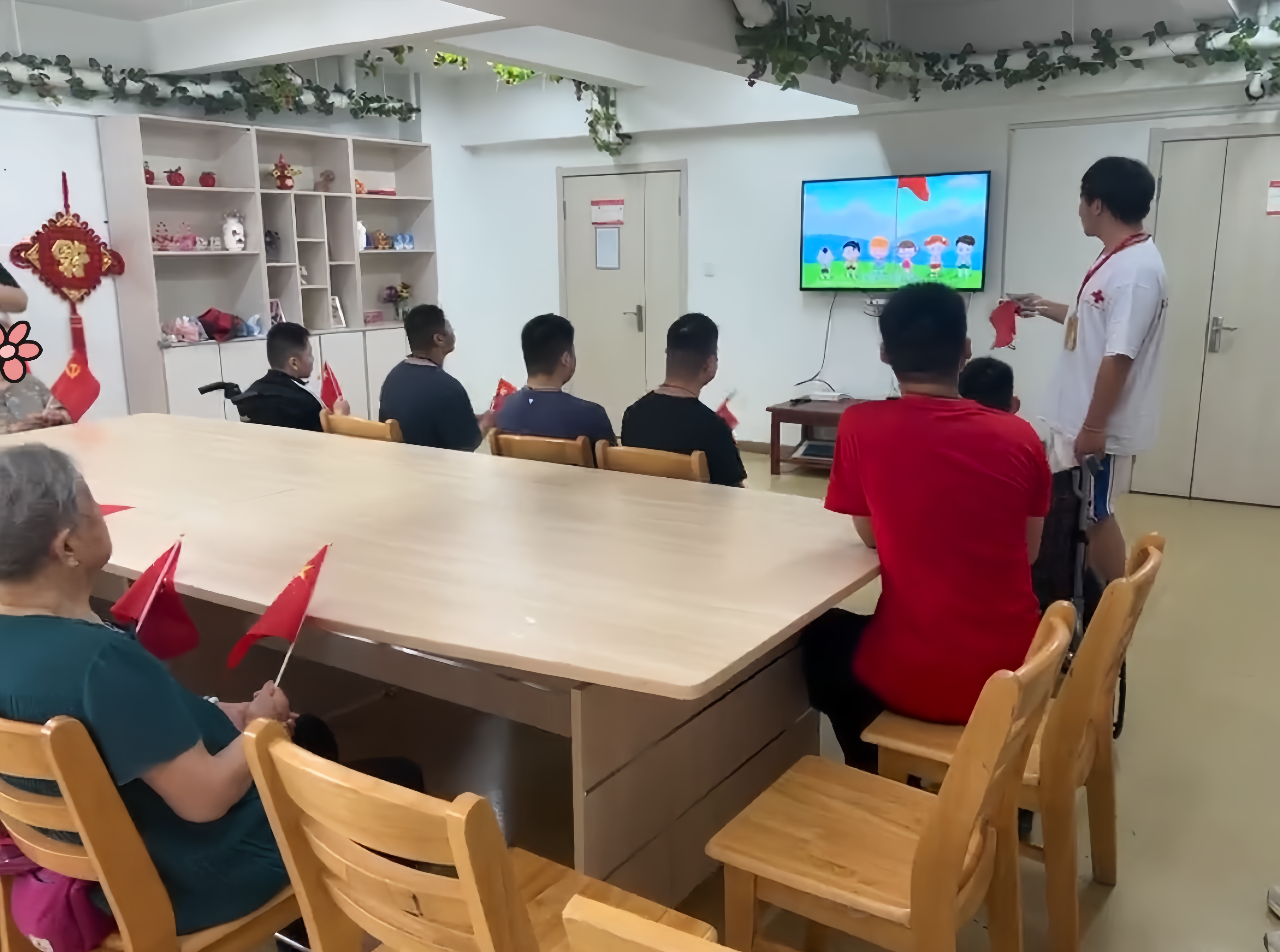 活动的高潮部分是小朋友们的表演环节。他们手持小红旗,在舞台上自信满满地演唱了《红星歌》。清脆的童声回荡在福利中心的大厅里,感染了在场的每一个人。老人们也纷纷鼓掌,脸上洋溢着欣慰的笑容,仿佛看到了祖国的未来和希望。