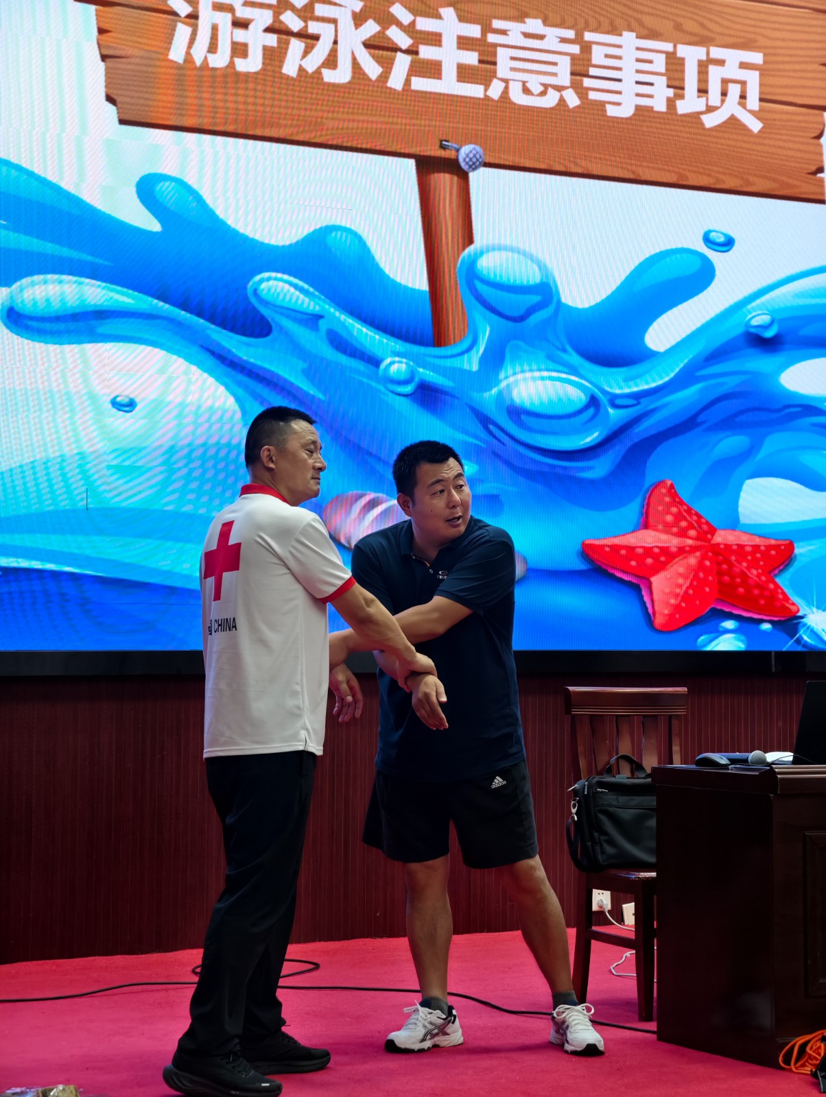 活动中,省红十字救护师资钱成宏向大家讲授防溺水、自救互救技巧等知识,分享日常生活中的典型案例,让孩子们意识到溺水的严重后果。现场演示救生衣的正确穿戴方式,通过人体仿真模型进行急救示范,邀请孩子们上前体验,让大家对防溺水有了更直观的认识。用通俗易懂的语言向家长与孩子们讲解了预防溺水“六不准”相关知识。暑期防溺水,安全不“放假”。
