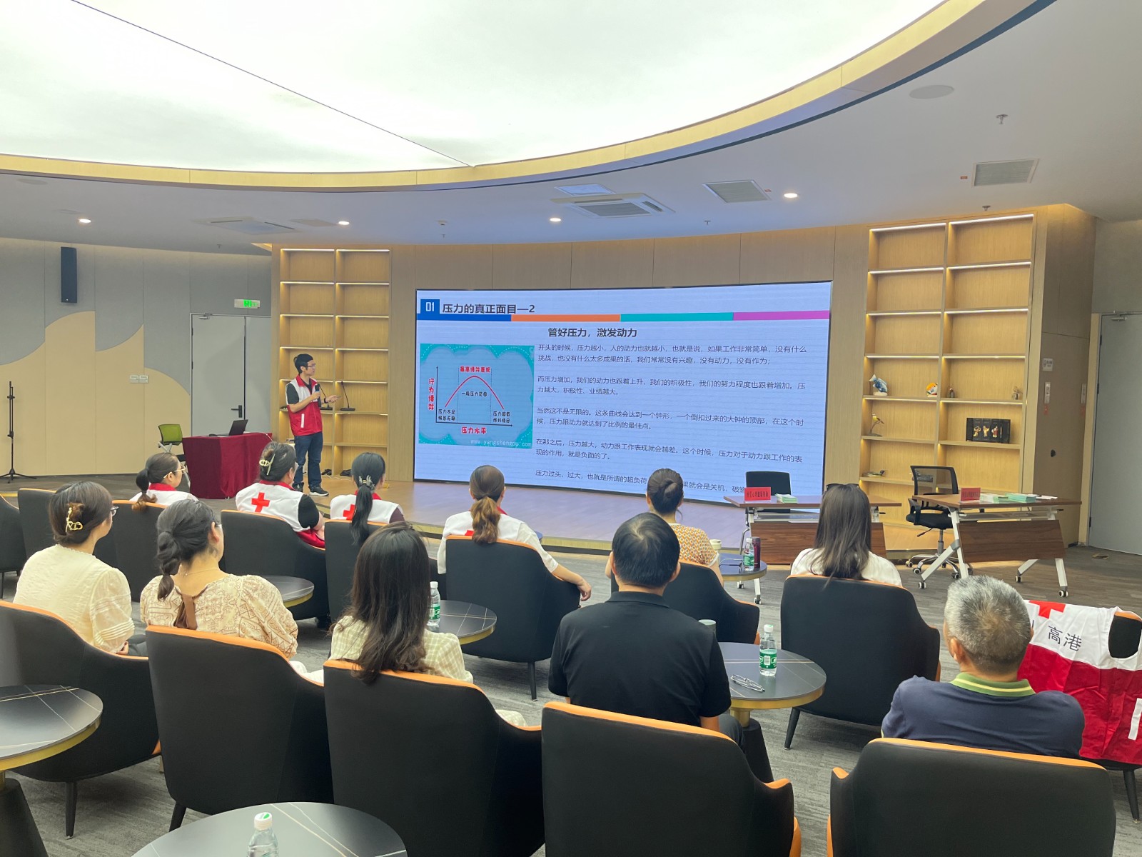 活动现场,区红十字会心理健康服务队老师马友益为大家带来了一场题为“与压力共舞——成为更好的自己”的心理健康教育讲座。用生动的语言、鲜活的案例、独到的见解,不仅为大家提供了丰盛的精神大餐,更能让大家直观地面对自己的情绪压力。