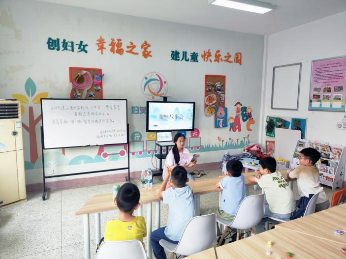 故事会现场,孩子们围坐成一圈,志愿者化身成“故事大王”,带领孩子们一起徜徉在故事的海洋中。志愿者用生动形象的语言,讲述故事中蕴含的道理,让小朋友们对故事有了更深的了解。《水中捞月》中小猴子在水中捞月的行为告诉孩子们,做事情要细心观察,善于思考,多动脑筋。《老虎拔牙》中小老虎由于吃太多糖导致牙疼而寻求拔牙,告诉孩子们要有良好的生活习惯。志愿者还运用游戏的形式进行互动,让孩子们主导整个故事发展,加深了小朋友们对所学知识的印象。孩子们认真地听着故事,开心地做着游戏,在游戏参与过程中,孩子们的耳朵专注力和手眼协调能力也得到了锻炼。