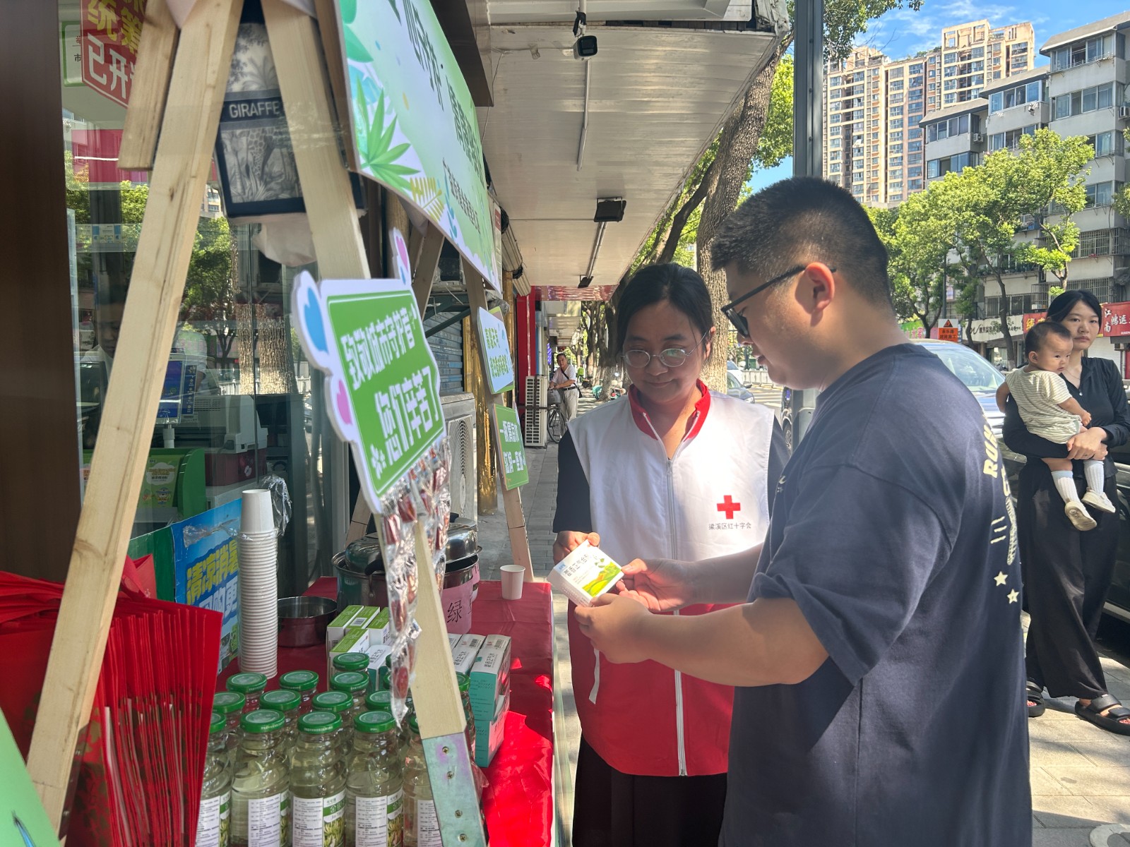纳凉驿站中红十字工作人员还免费开展测量血压,免费提供藿香正气水、风油精等夏季防中暑物品以备劳动者的应急之需。为坚守在工作岗位的环卫工人、外卖骑手、城管队员、交警铁骑等户外工作者提供矿泉水、绿豆汤、菊花茶等解暑饮品,在炎热的夏季给他们带去一丝凉意,让他们在酷热的工作环境中感受到了关爱与认可。