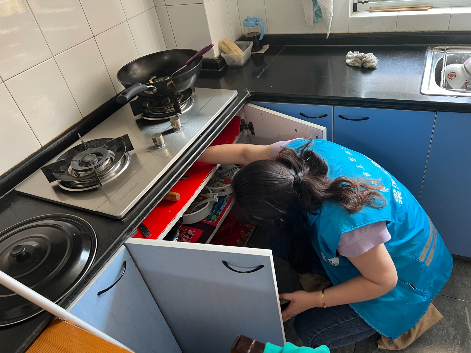 活动中,凤宾路社区红十字志愿者组织了一支由红十字志愿者以及辖区网格员组成的志愿者小队,根据自己的特长走进居民家中进行便民服务。磨刀小分队带着专业的磨刀工具,为需要帮助的居民提供免费磨刀服务;维修小分队为空巢独居老人修理更换漏水的水管;安全小分队为居民们上门检查燃气、水电安全。活动过程中,志愿者们耐心细致的服务收到了居民们的一致好评。