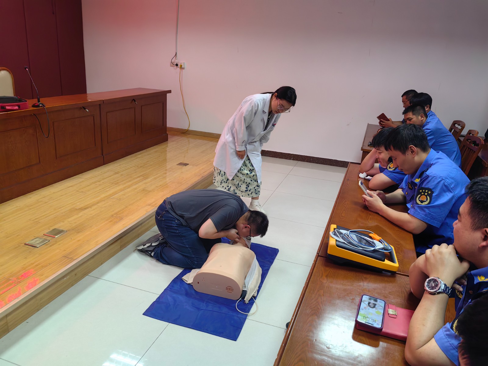 培训过程中,讲师用通俗易懂的语言,详细讲解了如何应对和处理一些常见的突发情况,如何有效地进行应急救护。期间,讲师还邀请城管队员们进行现场操作练习,在讲师的指导下,队员们顺利完成了心肺复苏的全套流程。参训的队员们认真听课,现场学习氛围十分浓烈。