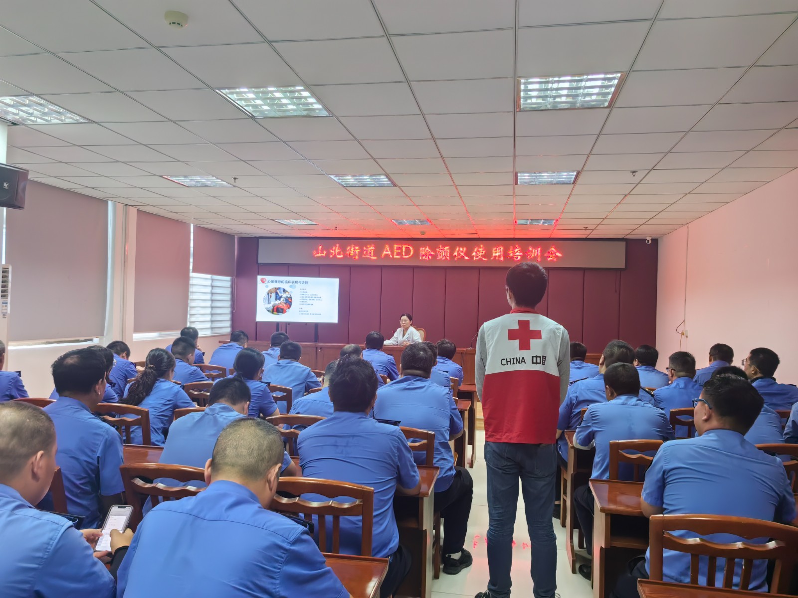 生命安全无小事,上好生命“必修课”,8月1日下午,山北街道红十字会联合山北街道城管中队开展了应急救护员培训活动,邀请了山北医院卫生服务中心的医生进行授课。