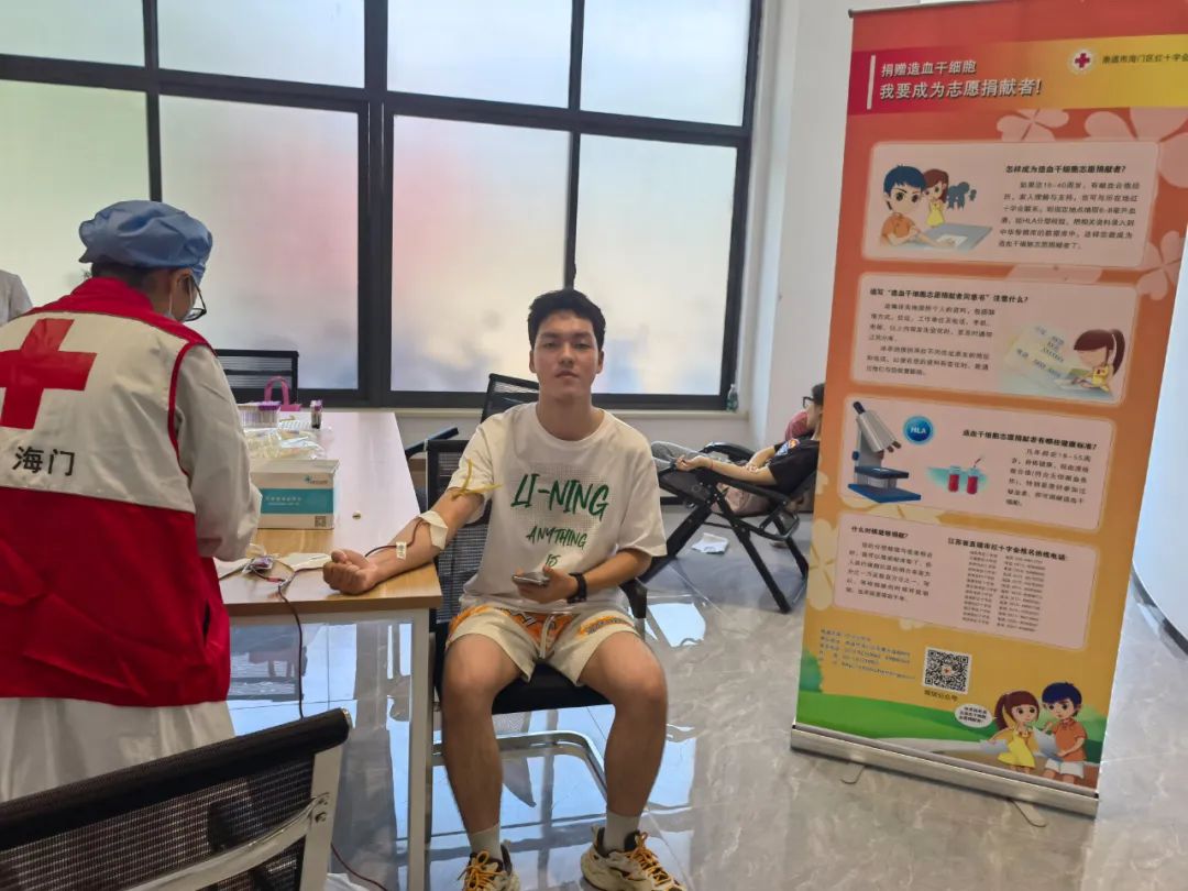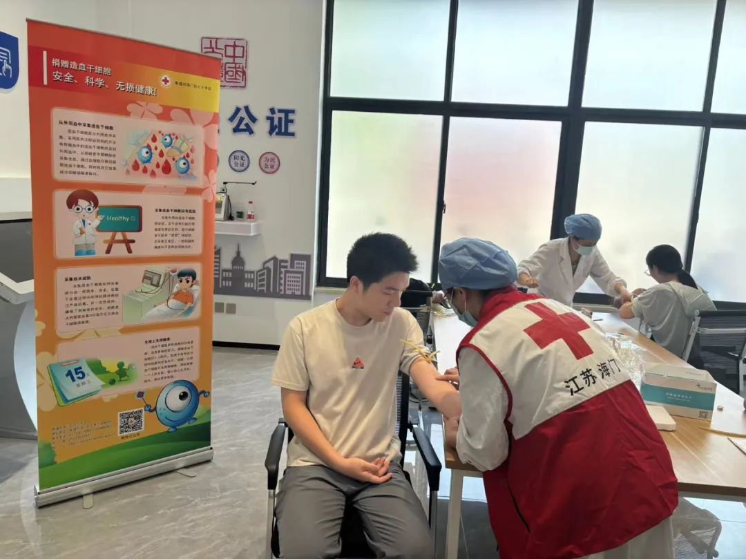 今年刚满18周岁的南通市高考文科状元杨镕瑞和上海交通大学二年级的蔡思雄也在献血的队伍中。填写献血者登记表、验血型……经过一番检测,两人符合献血条件。献血时,两位小伙子面带微笑,一脸轻松。在认真聆听了海门区红十字会党组书记、常务副会长杨曙光对于造血干细胞捐献的宣传介绍后,两位小伙还进行了血样采集,成为造血干细胞志愿捐献者,光荣地加入中华骨髓库大家庭。
