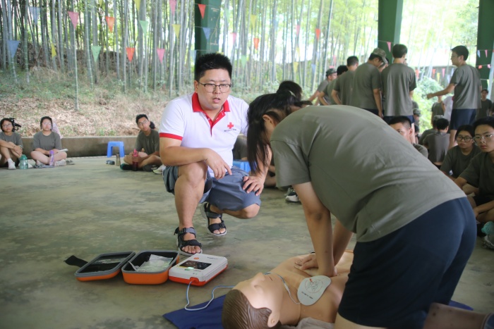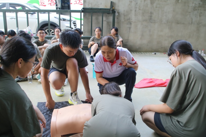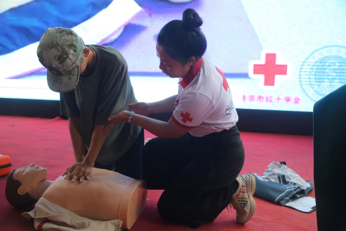 为普及应急救护知识,提高学生自救互救的意识与能力,有效应对校园突发情况,8月9日,溧水区红十字会组织20余名救护老师,为省溧中高一军训学生开展应急救护培训。