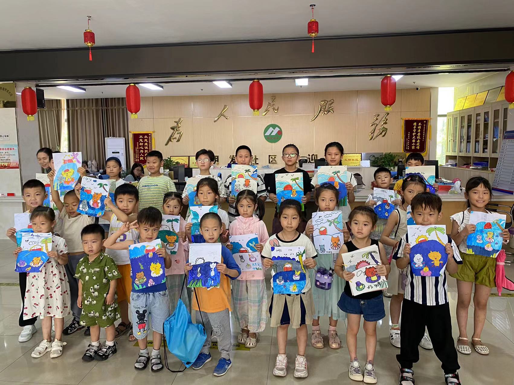 活动室聚集了不少社区的小朋友,虽然孩子们都没有什么美术功底,但是他们的参与热情非常高,在绘画老师的悉心讲解下,小朋友们用手中的画笔,按照新学的绘画技巧开始自己的创作画,不会画的小朋友还举手问老师,或者向小伙伴请教,忙得不亦乐乎。不一会儿,一幅幅画作跃然纸上,孩子们纷纷表示在绘画中感受到了艺术的魅力。社区工作人员和志愿者以温和细致的态度引导着小朋友们,鼓励大家尽情发挥想象,勇敢地在画纸上展现自己内心的世界。
