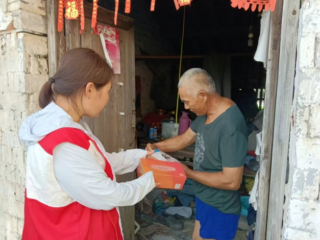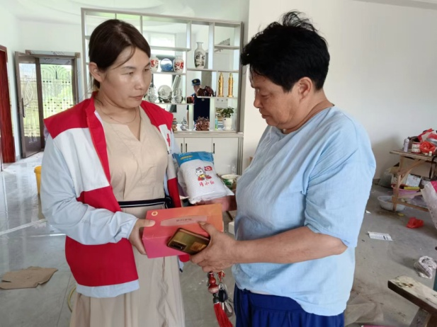 一支由红十字会志愿者组成的“送清凉”小分队,穿梭在村的各个角落,为居民们送去夏日里的一丝清凉与关怀。志愿者们不仅挨家挨户进行高温天气安全知识宣传,提醒居民们注意防暑降温,避免中暑等高温引发的健康问题,还贴心地为每户家庭准备了实用的防暑物品——餐巾纸和毛巾。
