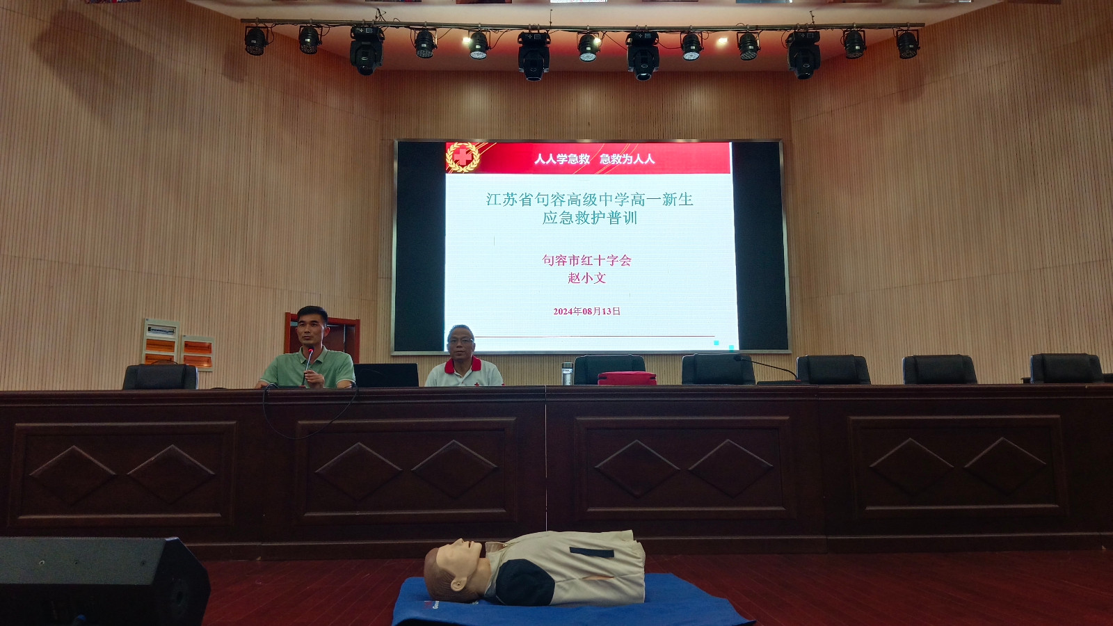 13日,市红十字会救护培训老师赵小文来到江苏省句容高级中学,为正在军训的高一年级新生举行应急救护知识培训,686名新生参加。