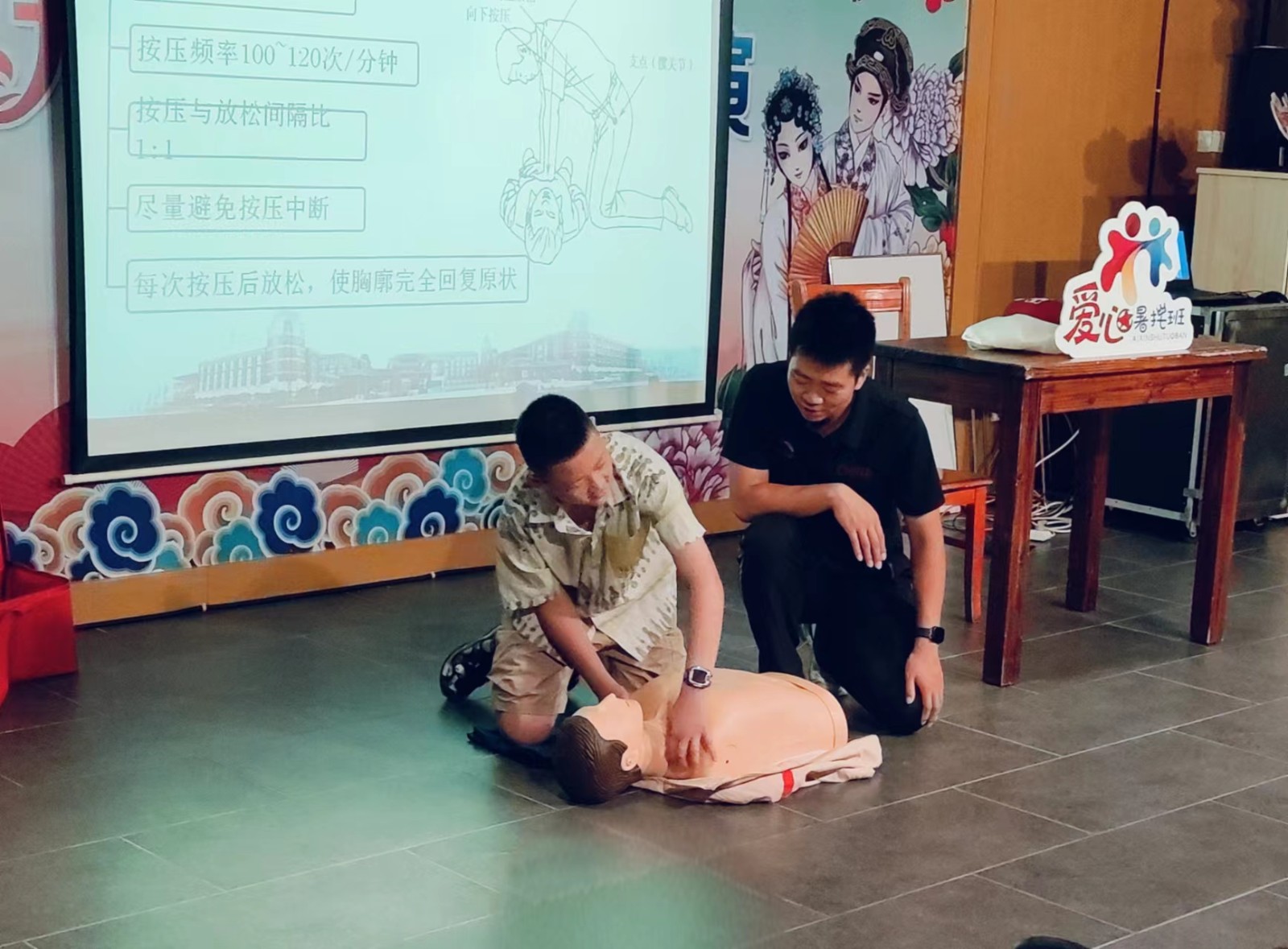 正值暑假青少年安全事故多发的时间,安西社区博爱家园以“应急救护”为主题,邀请了锡东高中的朱磊老师,为辖区的青少年上一堂生动有趣又具有教育意义的急救课程。
