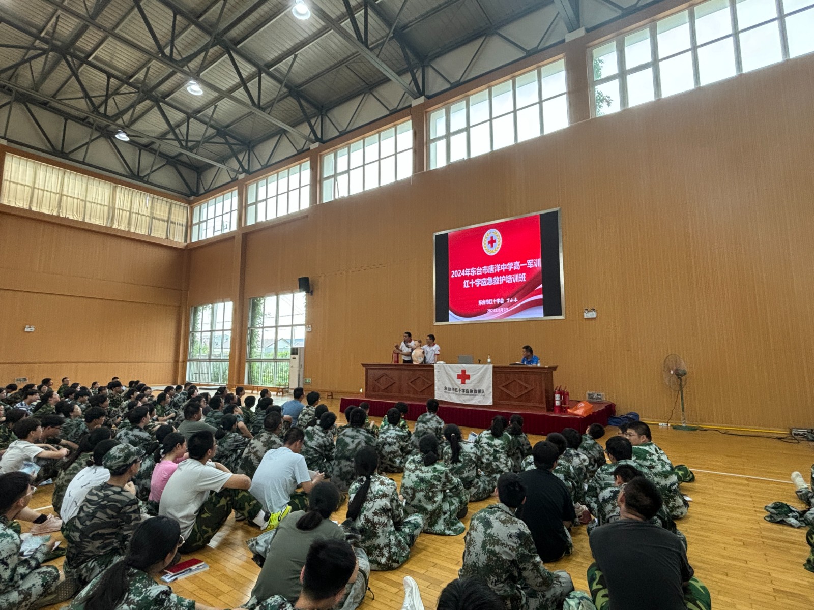 8月10日、11日下午,东台市红十字会走进市第一中学、唐洋中学为正在军训的高一新生,开展一场“救在身边”的红十字应急救护培训。本次培训旨在普及急救知识,提高学生自救互救能力,预防意外的目的。