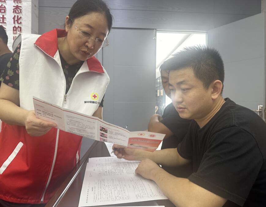 8月19日上午,城中街道红十字会结合无偿献血活动,志愿者现场进行无偿献血、造血干细胞捐献、人体器官捐献等知识的宣传,普及了社会公众对红十字会工作的知识,发扬了红十字“人道、博爱、奉献”的精神。