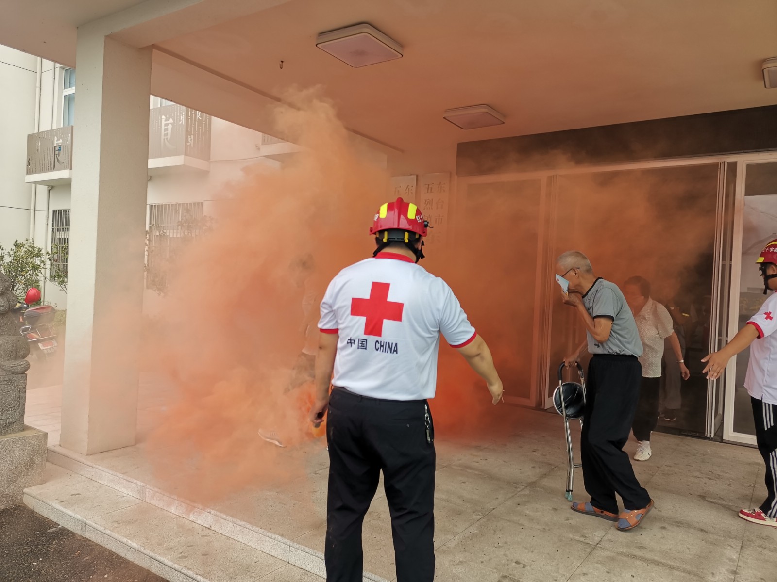 宣讲活动后,江苏省红十字(东台)救援队组织开展了防灾避险、逃生演练专项活动。