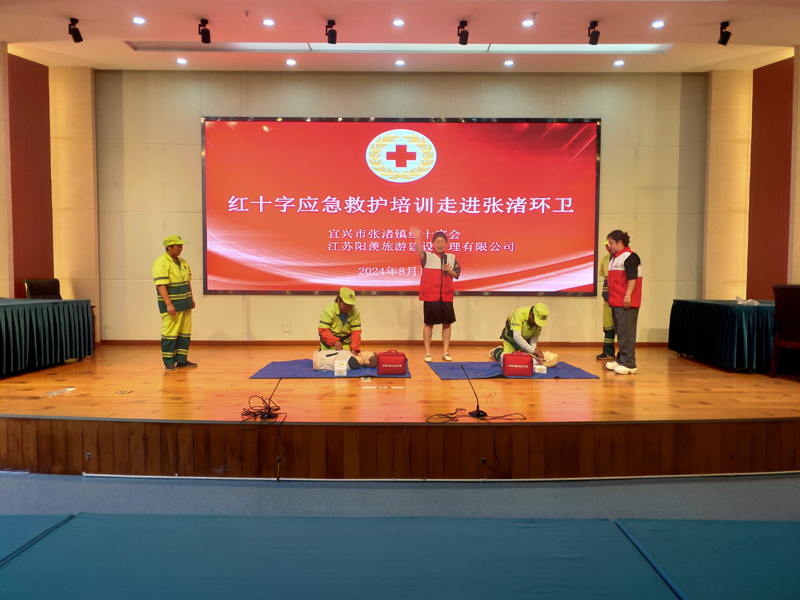 为切实提高环卫行业一线工作者的自救互救能力,8月14日下午,张渚镇红十字会走进了江苏阳羡旅游建设管理有限公司(张渚镇)环卫,为50余名环卫工作者开展应急救护培训。