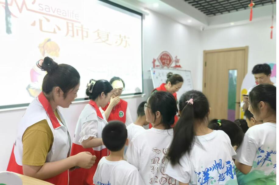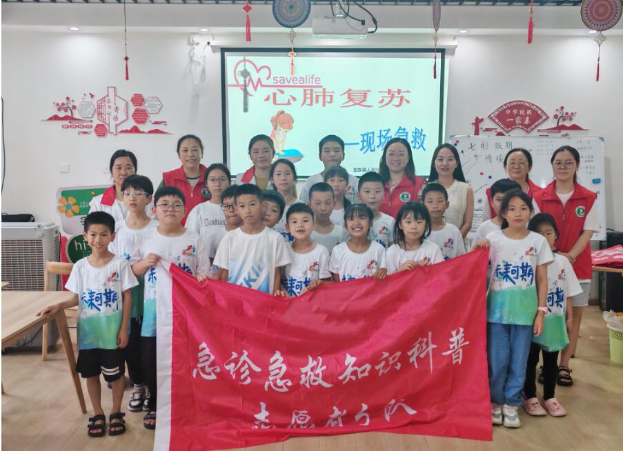 8月21日下午,长沙镇红十字会联合县人民医院急救中心团队走进洋口港、长沙镇“爱心暑托班”,志愿者通过PPT讲解、现场模拟等方式向儿童们普及海姆立克急救法、心肺复苏等知识,教会儿童们面对突发事件如何有效处理,发扬了红十字“人道、博爱、奉献”的精神。